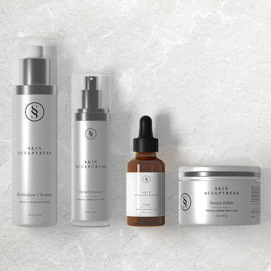 An anti-aging collection handpicked by the Skin Sculptress This bundle includes: Revitalize Cleanse Growth Factor Sculpt Derma Polish
